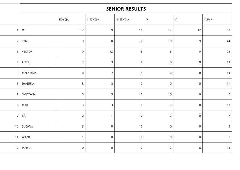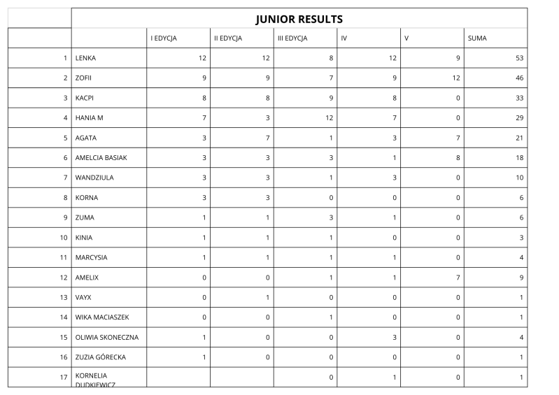 Punkty: Punkty otrzymują wszystkie osoby, które dostaną się do TOP16.
